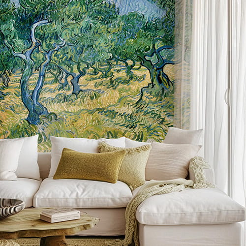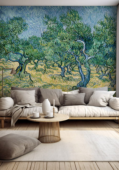 Rustykalna tapeta z obrazem van Gogha "Gaj oliwny" - śródziemnomorska dekoracja, która wniesie ciepło do Twojego domu