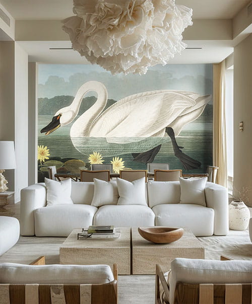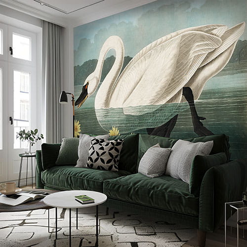 Tapeta na wymiar - Łabędź, ilustracja retro