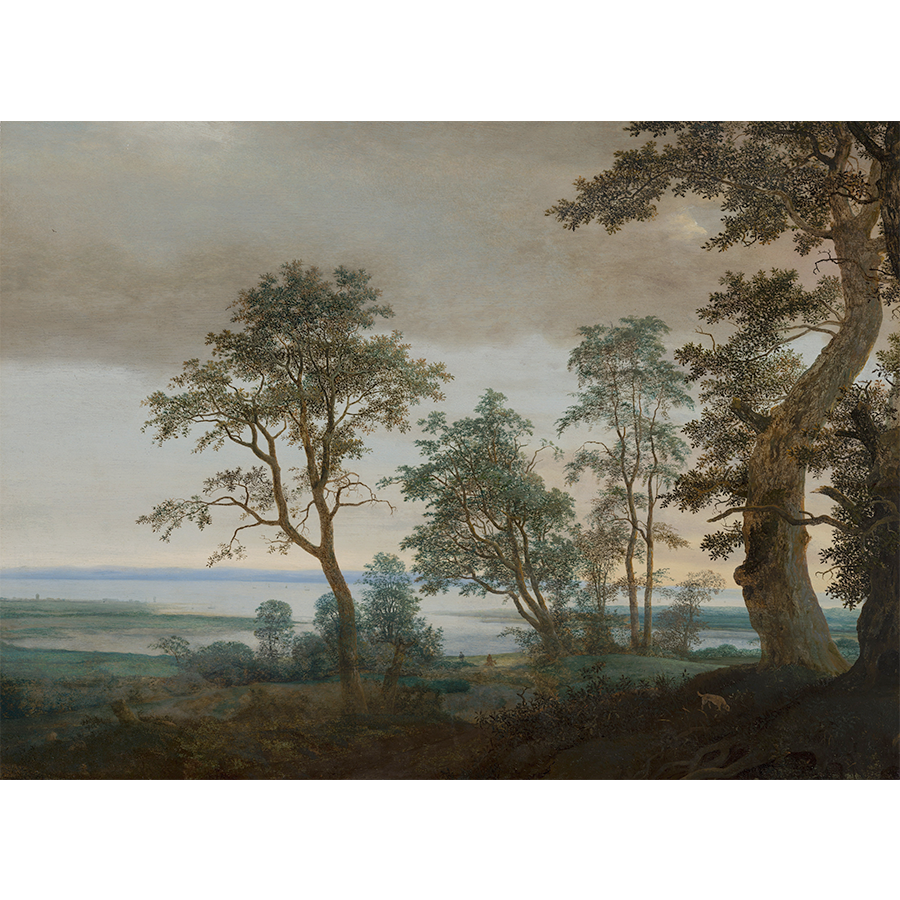 Elegancka tapeta na wymiar z romantycznym krajobrazem autorstwa Cornelisa Vrooma z 1638 roku, która przywołuje nastrój wyciszenia, uczucie przytulności i subtelnej nostalgii. Poczuj tę ciszę rześkiego poranka nad wodą, gdzie horyzont tonie w lekkiej mgle, a drzewa nad rzeką układają się w kojącym rytmie...
