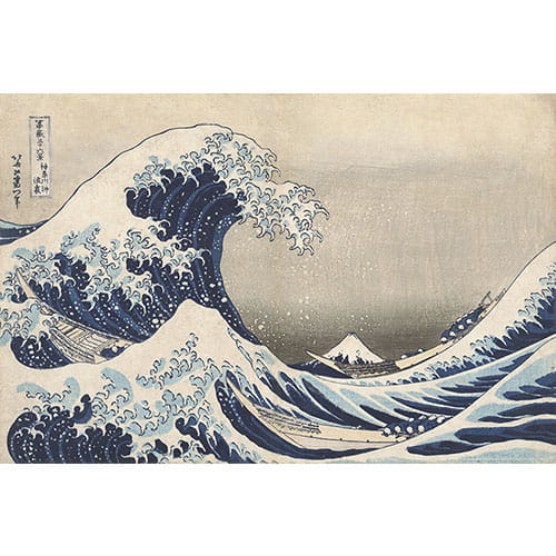 Tapeta japońska z kultowym drzeworytem "Wielka fala w Kanagawie" z 1831 roku, autorstwa Hokusai Katsushika, to wyjątkowa propozycja dla miłośników sztuki i designu. Ten słynny obraz, należący do malarskiego nurtu ukiyo-e - obrazy przemijającego świata, od lat fascynuje zarówno formą, jak i treścią. Monumentalna fala, która grozi zatopieniem rybackich łodzi, kontrastuje z niewzruszoną sylwetką góry Fudżi w tle - symbolizującą spokój, duchową równowagę i trwałość wobec zmienności życia.