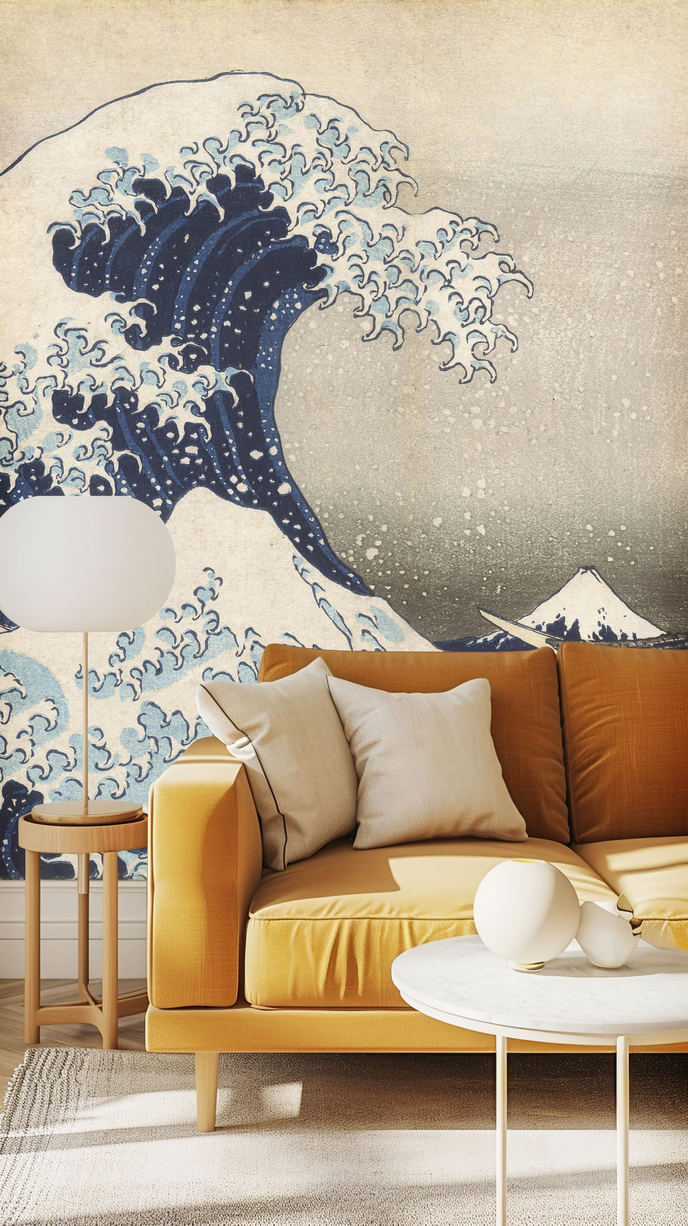 W kolekcji tapet orientalnych nawiązujących do sztuki japońskiej znajdziesz m.in. kultową "Wielką Falę w Kanagawie" Hokusai, wizerunki gejsz Utamaro pełne subtelności i elegancji, botaniczne irysy i kwitnące wiśnie w blasku księżyca autorstwa Kosona, czy energetyzujący wizerunek tygrysa wśród bambusów. Każdy z tych motywów niesie silną symbolikę - od mocy i ochrony, przez miłość i ulotne piękno, aż po duchową harmonię i kontemplację.